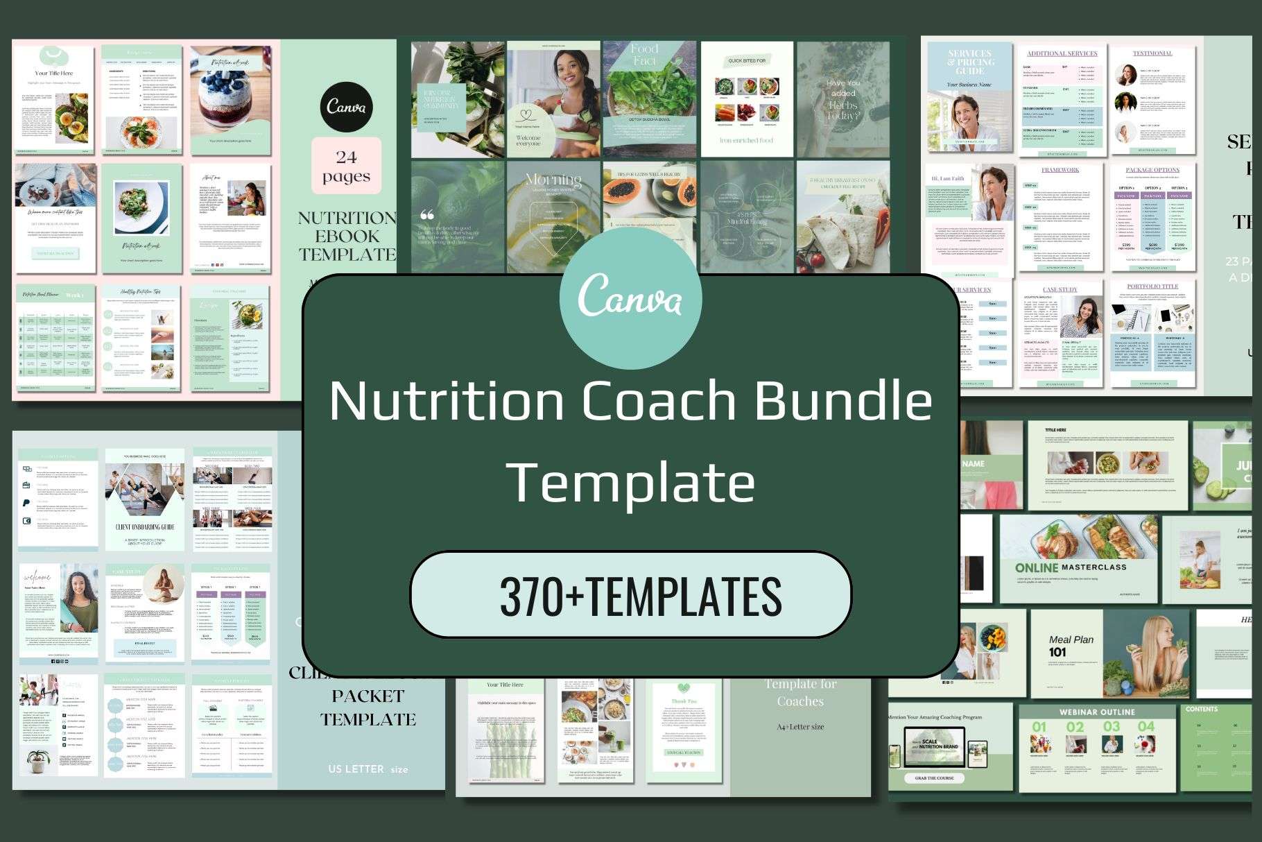 This Nutrition Coach Canva bundle is specially made for nutrition coaches, nutritionists, dietitians, health and wellness coaches, food bloggers, online course creators, or any other food and wellness service-based business.